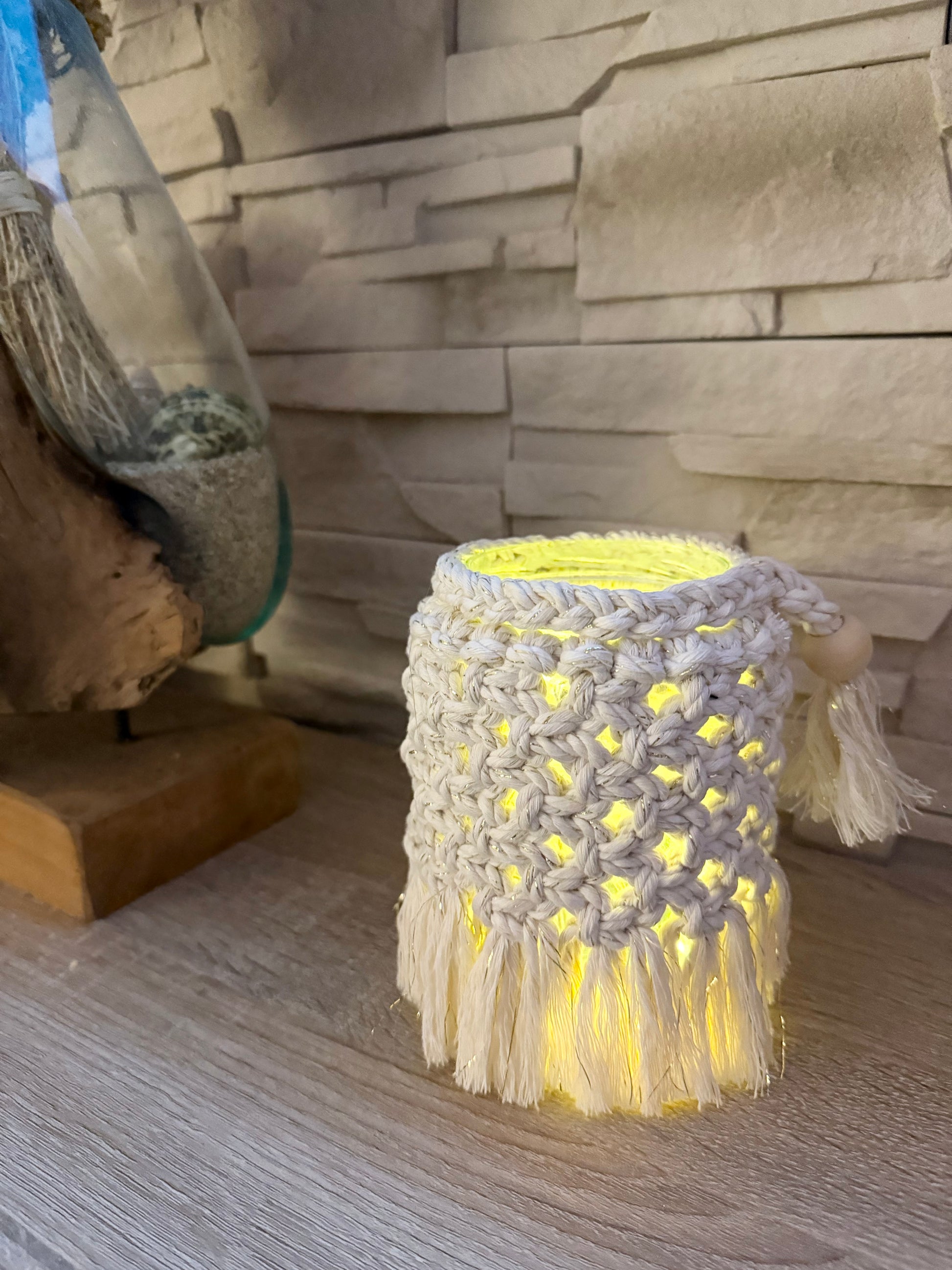 Créez une ambiance bohème et chaleureuse avec un photophore en macramé.